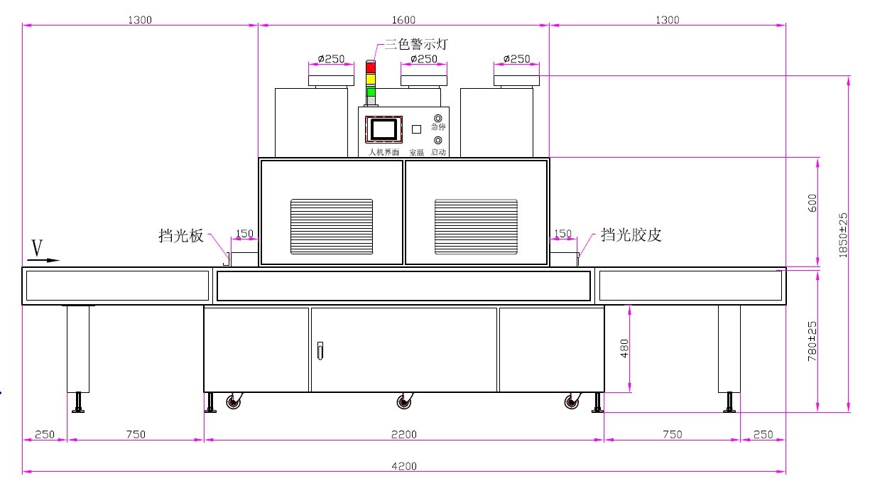 1.UV灯功率:12kw3支(UV卤素灯)