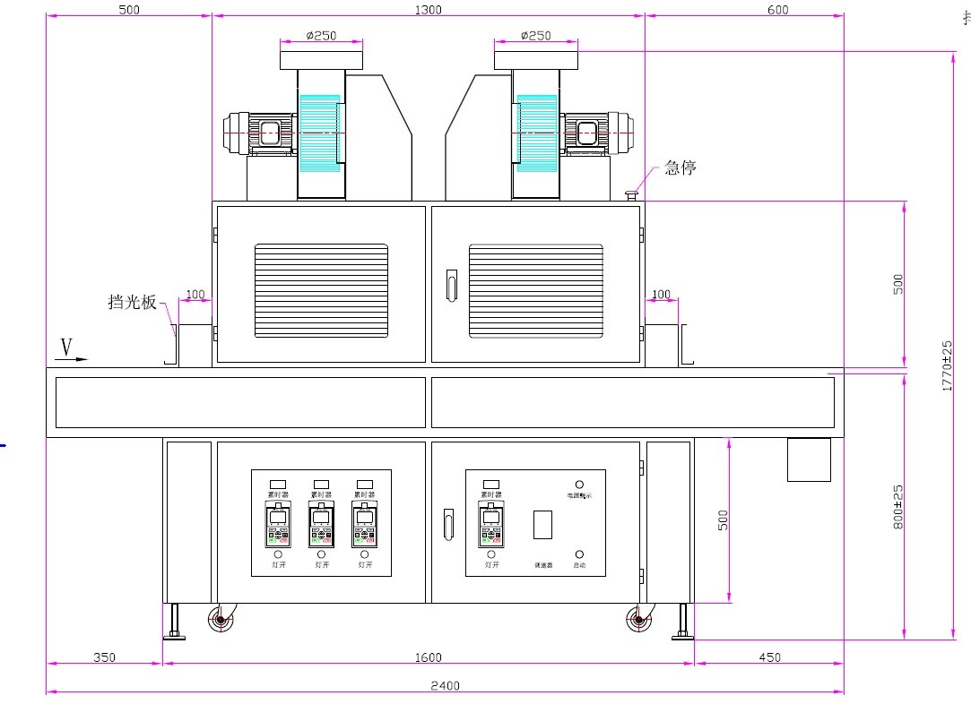 1、UV灯功率:7.2kw4支(铁灯1支、镓灯1支、汞灯2支)