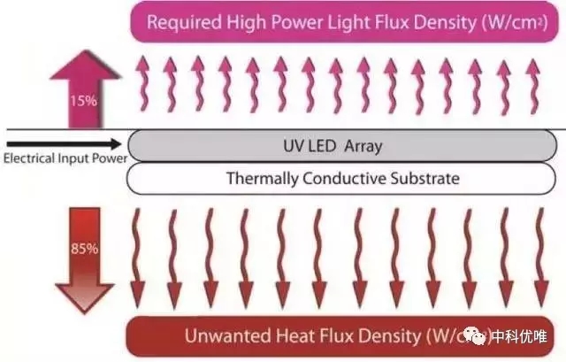 uvled光固化机将15到25%的电能转换为光,这比传统的汞灯效率要高,但剩下的75%-85%仍然被转换为了热。因此,必须要保持LED阵列的冷却。