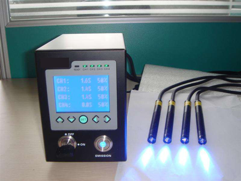 3、uv点光源固化机的特制聚光透镜总成也使它的能量高度集中在固化点上,提升了紫外胶的固化功率,能够一起驱动8路(每台设备能够装8条LED管),别离独立操控,为用户降低本钱,一起照耀增大面积 。