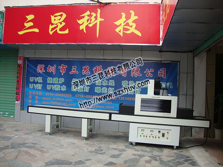 这是一种传送式UV固化装置,广泛用于网版印刷、平板印刷、凸版印刷、自粘商标、金属铭牌、KT板、玻璃陶瓷、电子零件、单面电路板等基材上负责制晶体冰花、磨砂、水晶宝石、七彩凸油等特殊效果。手机外壳、光盘、薄膜开关、电子塑胶外壳UV表面漆涂装;各种UV涂料、IMD注塑产品油墨固化;用于在固化电子元件、液晶片、端子胶封、手机组件粘合、塑胶组件粘合及LCD等;该装置体积小,重量轻,制作精良,移动方便。