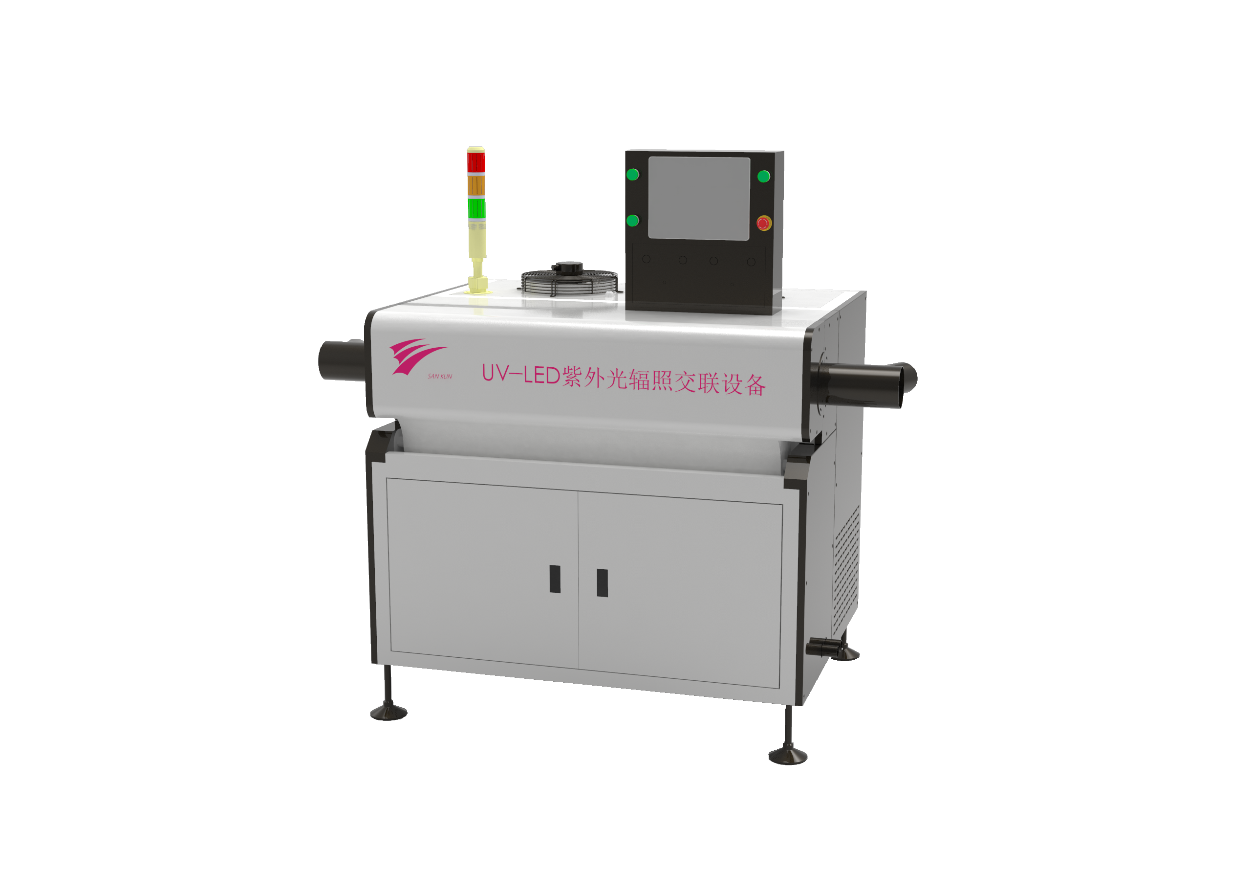 UV设备,纤维光固化机,LED辐照交联设备,普通生产线改为“紫外线辐照UV交联” 生产线只需要在原来的普通挤出生产线上增加“电缆交联紫外线设备”,即可生产轻质交联聚烯烃绝缘电线电缆产品。